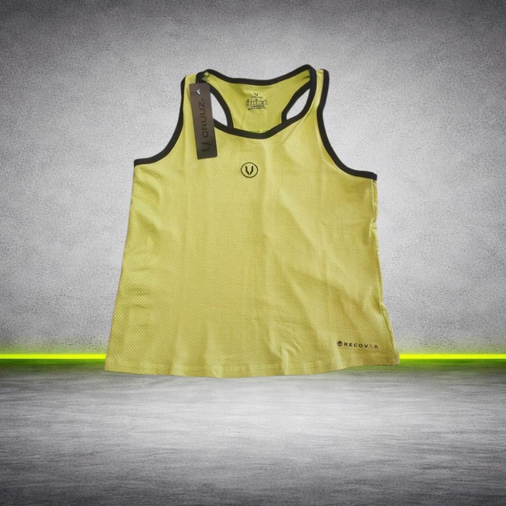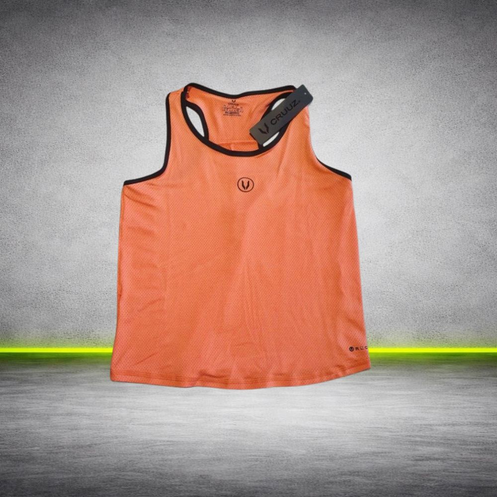 Musculosa deportiva para mujer confeccionada en tela Dry Fit liviana y respirable, ideal para entrenamientos, gimnasio, running o actividades deportivas.
