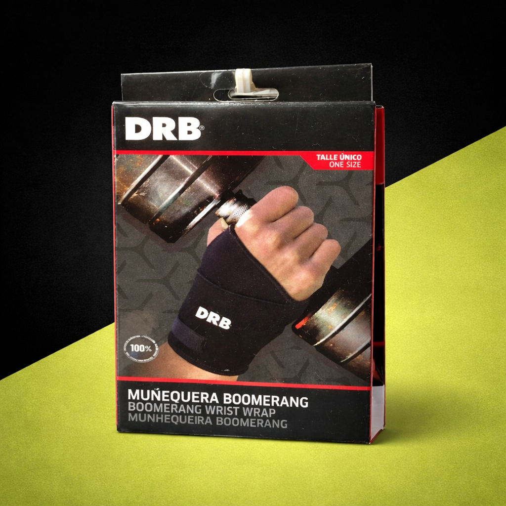 La muñequera Boomerang de DRB® brinda estabilización y soporte funcional para muñecas lesionadas o debilitadas. Su diseño incluye un ojal que rodea el dedo pulgar y una envoltura cruzada con velcro, que permite un ajuste firme y personalizado, generando mayor compresión, estabilidad y soporte articular. Es ambidiestra y fácil de colocar, ideal tanto para entrenamiento como para rehabilitación. El material de neoprene conserva el calor corporal, manteniendo la muñeca templada y lista para la acción, lo que contribuye a reducir el riesgo de lesiones.