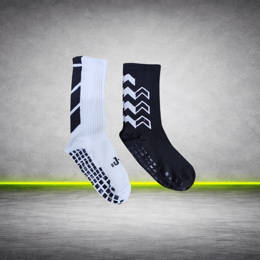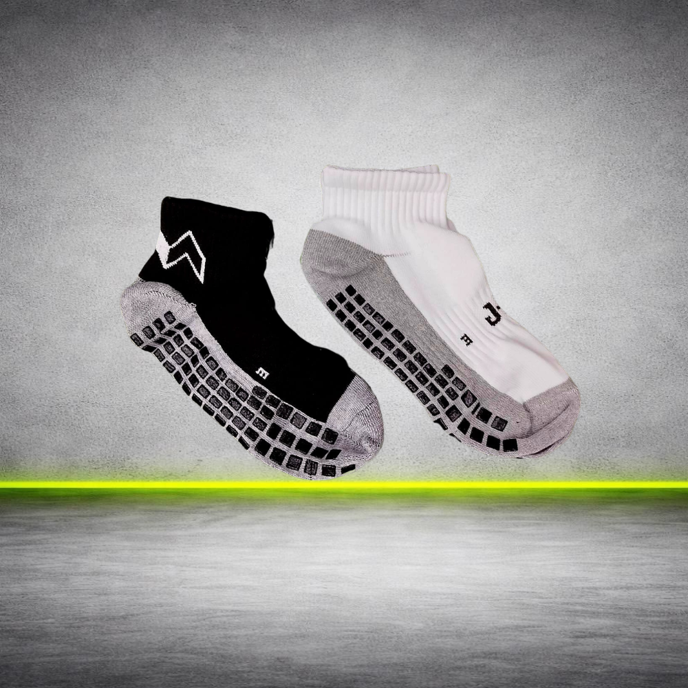 Medias deportivas con tecnología antideslizante en la planta del pie que mejora la estabilidad dentro del calzado.
