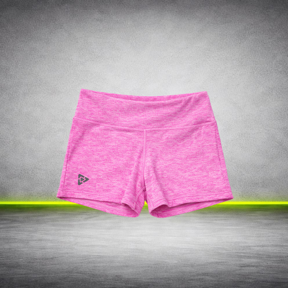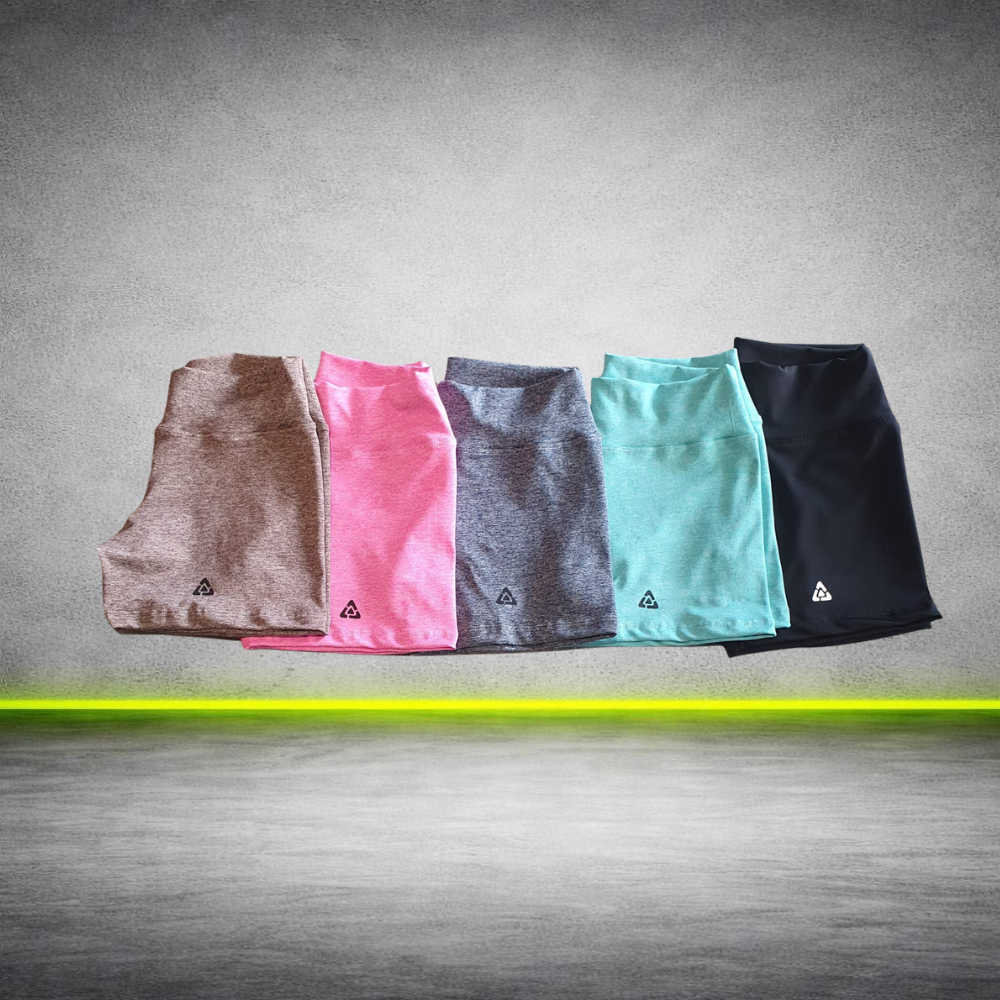 Short deportivo para mujer confeccionado en tela lycra jaspeada, ideal para entrenamiento, gimnasio o actividades deportivas. Su diseño cómodo y elastizado permite libertad de movimiento y un ajuste firme al cuerpo.